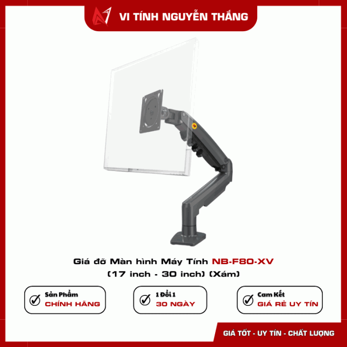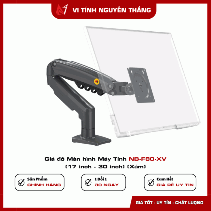 Giá đỡ màn hình NB-F80-XV là lựa chọn đáng cân nhắc nếu bạn muốn một sản phẩm chắc chắn, điều chỉnh linh hoạt và nâng cao trải nghiệm sử dụng màn hình. Với khả năng xoay 360°, tương thích rộng và thiết kế bền bỉ, NB-F80-XV mang lại sự tiện lợi tối đa cho mọi không gian làm việc.