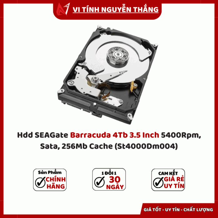 HDD Seagate Barracuda 4TB 3.5 Inch 5400RPM SATA 256MB Cache (ST4000DM004) là giải pháp lưu trữ đáng tin cậy cho mọi nhu cầu cá nhân và doanh nghiệp. Với dung lượng khủng, hiệu năng ổn định và giá thành hợp lý, đây là lựa chọn lý tưởng cho những ai muốn mở rộng không gian lưu trữ với chi phí tối ưu.
