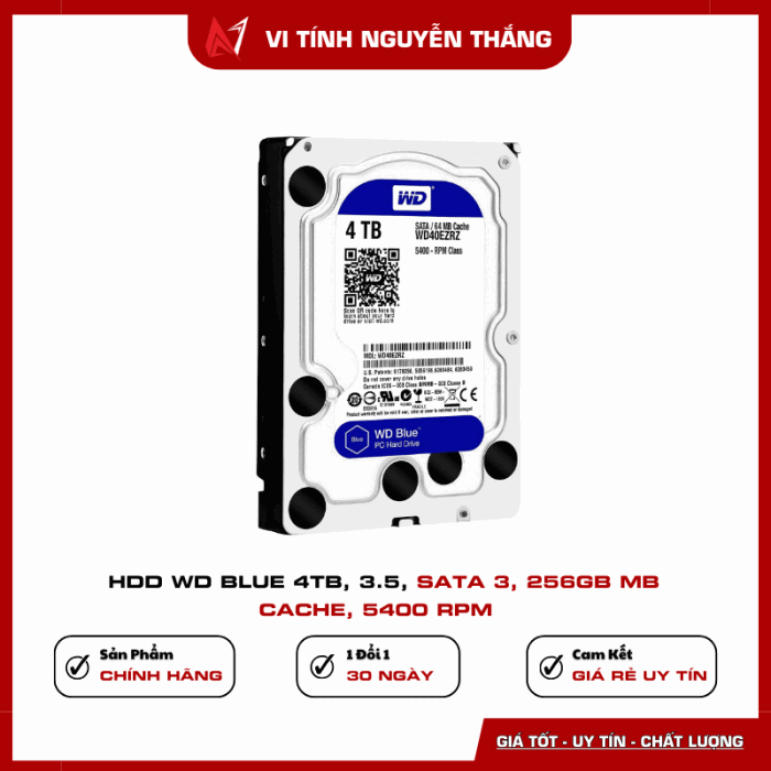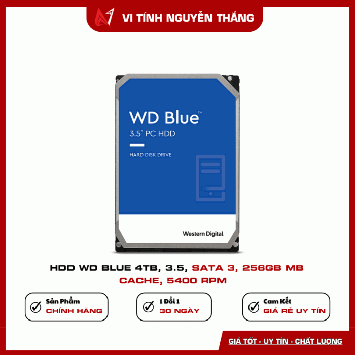 HDD WD Blue 4TB 3.5" SATA 3 là lựa chọn lý tưởng cho người dùng cần một giải pháp lưu trữ dung lượng lớn, ổn định, độ bền cao và giá thành hợp lý cho nhiều nhu cầu sử dụng khác nhau.