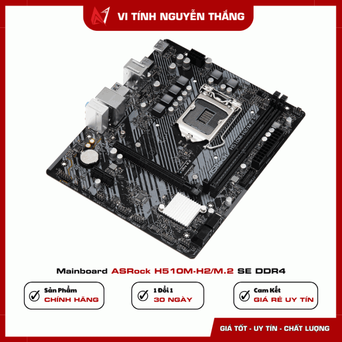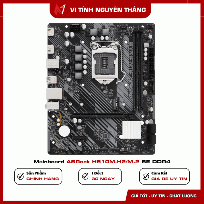 Mainboard ASRock H510M-H2/M.2 SE DDR4 là bo mạch chủ phổ thông ổn định, phù hợp cho các cấu hình PC văn phòng, học tập và giải trí nhẹ sử dụng CPU Intel thế hệ 10 & 11. Với thiết kế Micro‑ATX gọn gàng, hỗ trợ RAM DDR4, khe M.2 tốc độ cao cùng hệ thống cổng kết nối đầy đủ, đây là lựa chọn tối ưu về hiệu năng và chi phí.