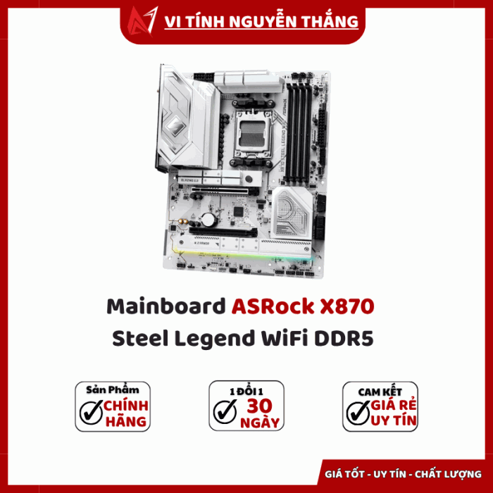 Mainboard ASRock X870 Steel Legend WiFi DDR5 là một bo mạch chủ toàn diện, mang đến sự cân bằng giữa hiệu năng mạnh mẽ, kết nối hiện đại và thiết kế bền bỉ. Với chipset X870, hỗ trợ DDR5, PCIe 5.0, WiFi 7, cùng hệ thống tản nhiệt tối ưu, sản phẩm này sẽ là lựa chọn đáng giá cho mọi game thủ và người dùng chuyên nghiệp.