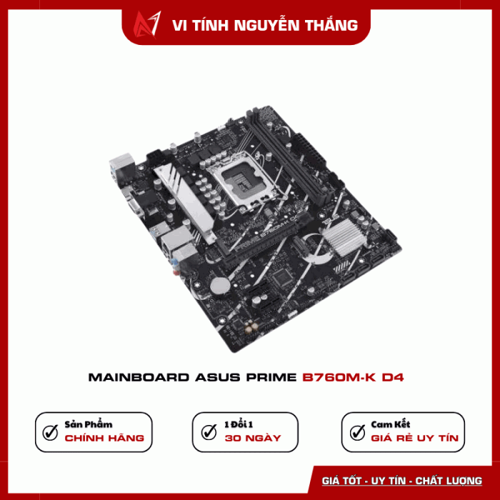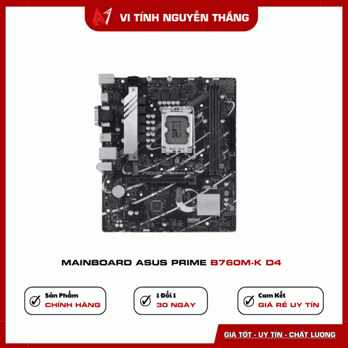 Mainboard ASUS PRIME B760M-K D4 là lựa chọn phù hợp cho người dùng cần một bo mạch chủ ổn định, bền bỉ, giá tốt để xây dựng PC học tập, làm việc hoặc gaming phổ thông với CPU Intel thế hệ mới.
