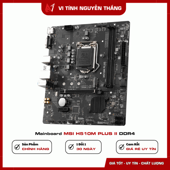 Với mức giá hợp lý, tính ổn định cao và khả năng tương thích rộng, Mainboard MSI H510M PLUS II DDR4 là lựa chọn hàng đầu cho] máy tính văn phòng, PC học sinh – sinh viên, máy chơi game phổ thông. Các bộ máy tiết kiệm nhưng vẫn cần độ bền và hiệu năng tốt.