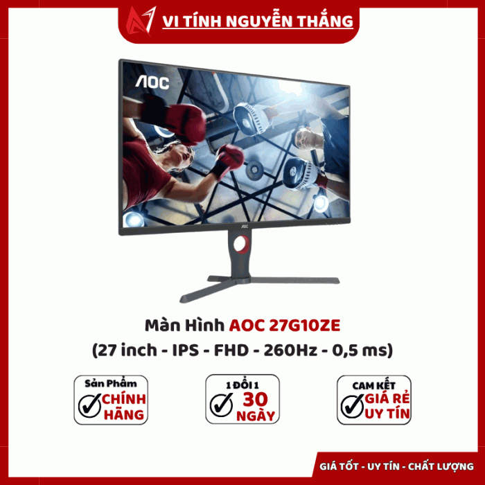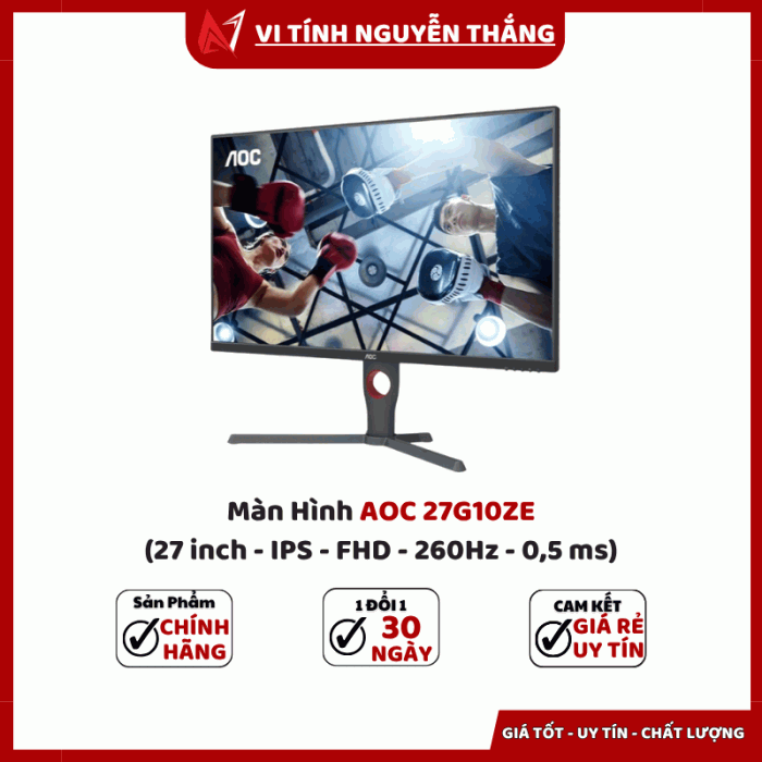 Màn Hình AOC 27G10ZE là lựa chọn hoàn hảo cho những ai đang tìm kiếm một màn hình gaming tốc độ siêu cao, màu sắc trung thực, thiết kế hiện đại. Với sự kết hợp giữa 260Hz – 0,5ms – IPS, sản phẩm này chắc chắn sẽ làm hài lòng cả game thủ chuyên nghiệp lẫn người dùng sáng tạo nội dung.