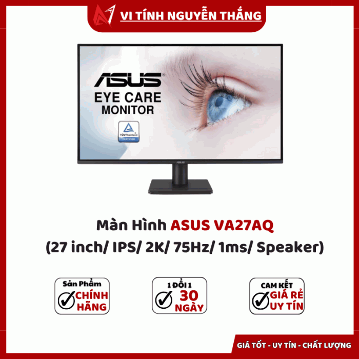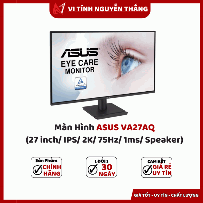 Màn hình ASUS VA27AQ là lựa chọn lý tưởng cho những ai cần một chiếc màn hình 27 inch với độ phân giải 2K (2560x1440) sắc nét, tấm nền IPS cao cấp, tần số quét 75Hz, thời gian phản hồi 1ms (MPRT) và tích hợp loa ngoài tiện lợi. Với thiết kế tinh gọn, công nghệ Eye Care+ bảo vệ mắt và nhiều tính năng hỗ trợ gaming, làm việc lẫn giải trí, đây là mẫu màn hình đa dụng đáng sở hữu trong phân khúc.
