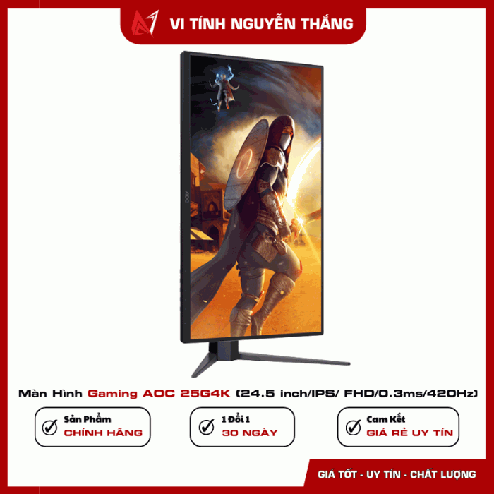 AOC 25G4K là mẫu màn hình gaming cao cấp được thiết kế dành riêng cho game thủ chuyên nghiệp và những ai theo đuổi trải nghiệm thi đấu esports tốc độ cao. Với kích thước 24.5 inch, độ phân giải Full HD kết hợp tấm nền Fast IPS cùng tần số quét lên đến 420Hz, sản phẩm mang lại lợi thế vượt trội trong các tựa game FPS, MOBA hay bắn súng cạnh tranh.
