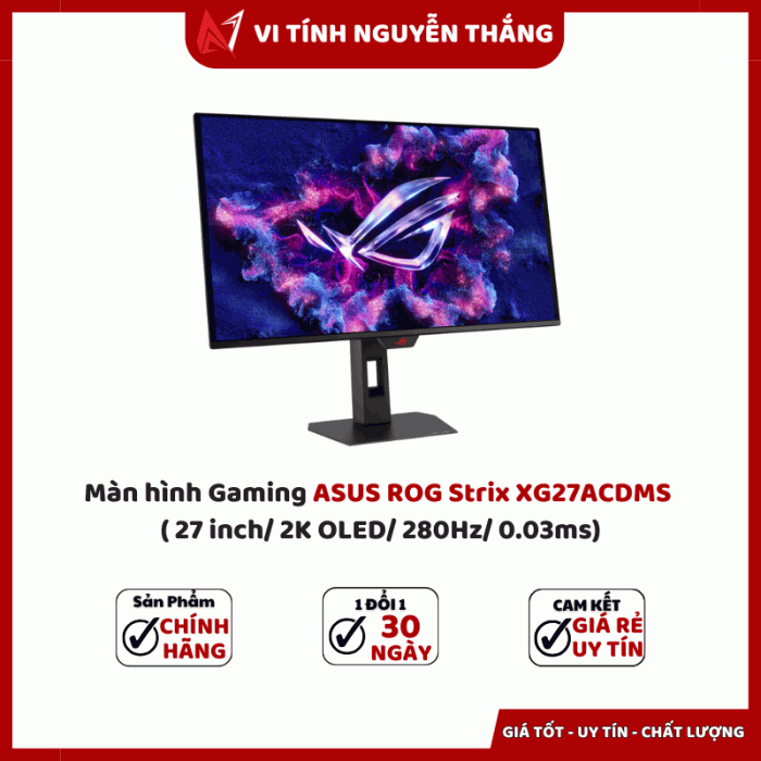 ASUS ROG Strix XG27ACDMS là lựa chọn đỉnh cao trong phân khúc màn hình gaming OLED 2K, mang đến sự kết hợp hoàn hảo giữa chất lượng hình ảnh, tốc độ và công nghệ thông minh. Dù bạn là game thủ eSports chuyên nghiệp hay người đam mê đồ họa, đây chính là chiếc màn hình giúp bạn tận hưởng từng khung hình mượt mà, sống động và sắc nét nhất.