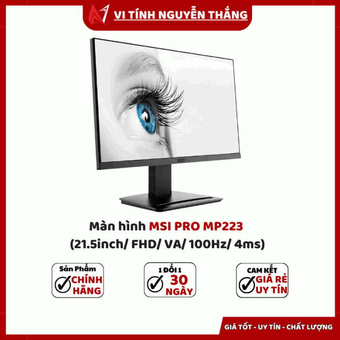 Màn hình MSI PRO MP223 là lựa chọn hoàn hảo cho người dùng cần một chiếc màn hình nhỏ gọn, giá hợp lý, hiển thị rõ nét và tiết kiệm điện. Với độ phân giải Full HD, tần số quét 100Hz và hỗ trợ Adaptive Sync, sản phẩm đáp ứng tốt nhu cầu làm việc, học tập và giải trí cơ bản.