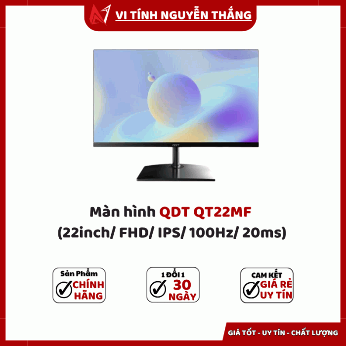 Màn hình QDT QT22MF 22 inch là một sự lựa chọn hợp lý trong phân khúc phổ thông, phù hợp với học sinh, sinh viên, nhân viên văn phòng hoặc gia đình cần một chiếc màn hình giá tốt – hình ảnh rõ nét – hoạt động ổn định. Với độ phân giải Full HD, tấm nền IPS và tần số quét 100Hz, sản phẩm đáp ứng đầy đủ nhu cầu học tập, làm việc và giải trí cơ bản.