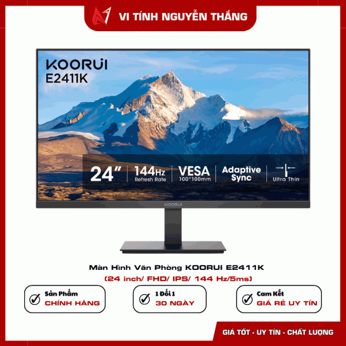 Với sự kết hợp giữa độ phân giải FHD, tần số quét 144Hz và độ phủ màu cao, KOORUI E2411K không chỉ đáp ứng tốt công việc văn phòng mà còn phù hợp cho học tập trực tuyến, xem phim và chơi game giải trí.