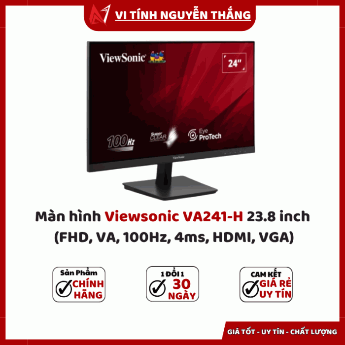 Màn hình Viewsonic VA241-H 23.8 inch FHD VA 100Hz là giải pháp hoàn hảo cho ai đang tìm kiếm một màn hình đẹp, mượt, giá hợp lý. Với thiết kế tinh tế, hình ảnh rõ nét và công nghệ bảo vệ mắt tiên tiến, đây là lựa chọn đáng giá cho mọi nhu cầu từ văn phòng, học tập đến giải trí.
