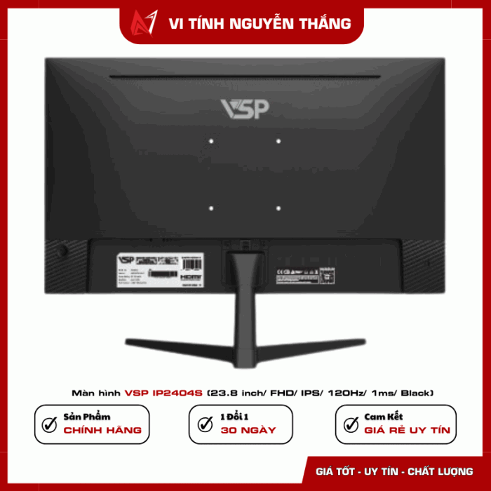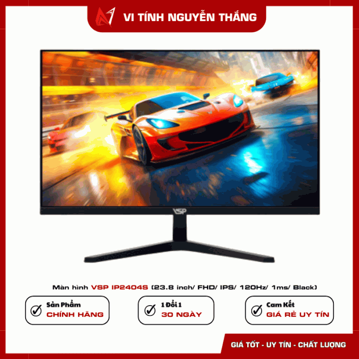 VSP IP2404S là mẫu màn hình 23.8 inch được thiết kế hướng đến người dùng cần sự cân bằng giữa hiển thị đẹp, chuyển động mượt và khả năng bảo vệ mắt. Sở hữu tấm nền IPS chất lượng cao từ BOE ADS, độ phủ màu rộng cùng tần số quét 120Hz, sản phẩm đáp ứng tốt nhu cầu làm việc, học tập và giải trí hằng ngày.