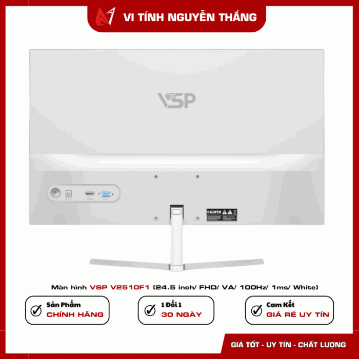 VSP V2510F1 là mẫu màn hình 24.5 inch hướng đến người dùng phổ thông cần một sản phẩm có thiết kế hiện đại, hiển thị rõ nét và mức giá hợp lý. Với tông màu trắng thanh lịch, màn hình không chỉ phù hợp cho góc học tập và làm việc mà còn đáp ứng tốt nhu cầu giải trí và chơi game nhẹ nhờ tần số quét cao và thời gian phản hồi nhanh.