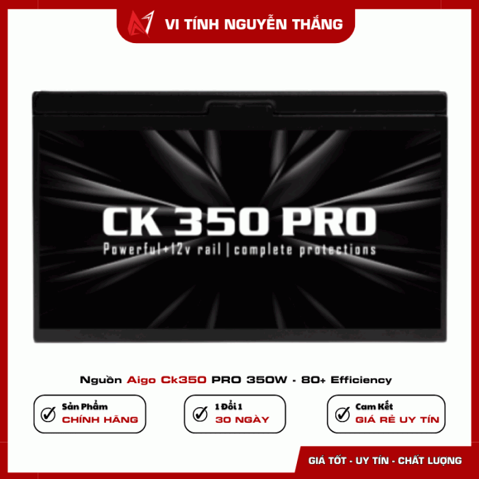 AIGO CK350 PRO 350W là lựa chọn lý tưởng cho những cấu hình PC văn phòng, học tập hoặc máy phổ thông cần sự ổn định, bền bỉ và mức giá tiết kiệm. Với công suất thực 350W, quạt tản nhiệt 120mm êm ái, hệ thống bảo vệ an toàn và độ hoàn thiện chắc chắn, mẫu nguồn này đáp ứng tốt hầu hết nhu cầu sử dụng cơ bản hằng ngày. Nếu bạn đang tìm một bộ nguồn giá rẻ nhưng vẫn đảm bảo chất lượng, AIGO CK350 PRO chắc chắn là sản phẩm đáng để cân nhắc.