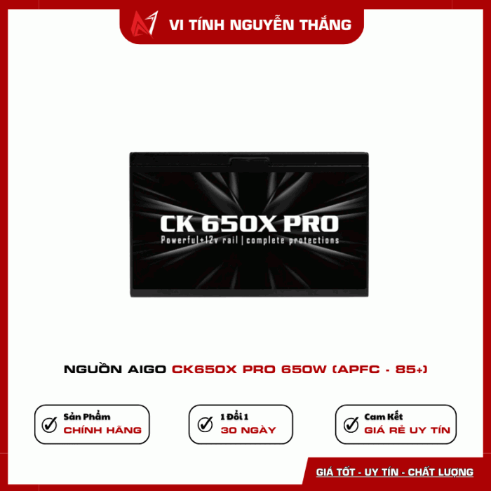 Nguồn AIGO CK650X Pro 650W APFC 85+ là lựa chọn lý tưởng cho người dùng đang tìm kiếm bộ nguồn chất lượng, hiệu suất cao và mức giá hợp lý cho PC gaming và làm việc.