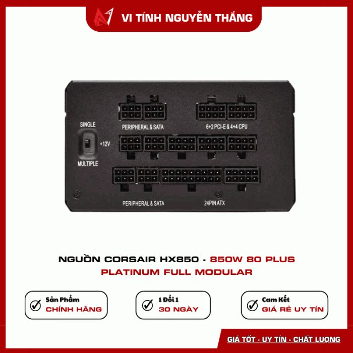 Nguồn Corsair HX850 850W 80 Plus Platinum Full Modular là lựa chọn hoàn hảo cho người dùng yêu cầu hiệu năng cao, độ ổn định lâu dài và khả năng nâng cấp linh hoạt cho hệ thống PC thế hệ mới.
