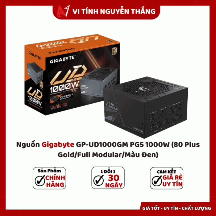 Nguồn máy tính Gigabyte GP-UD1000GM PG5 1000W là một trong những bộ nguồn cao cấp, được thiết kế để cung cấp hiệu suất tối ưu và độ ổn định cao cho hệ thống PC gaming cũng như làm việc chuyên nghiệp. Với chứng nhận 80 Plus Gold, thiết kế Full Modular, và hỗ trợ PCIe Gen 5.0, đây là sự lựa chọn lý tưởng cho các dàn máy hiệu suất cao sử dụng GPU mạnh mẽ.