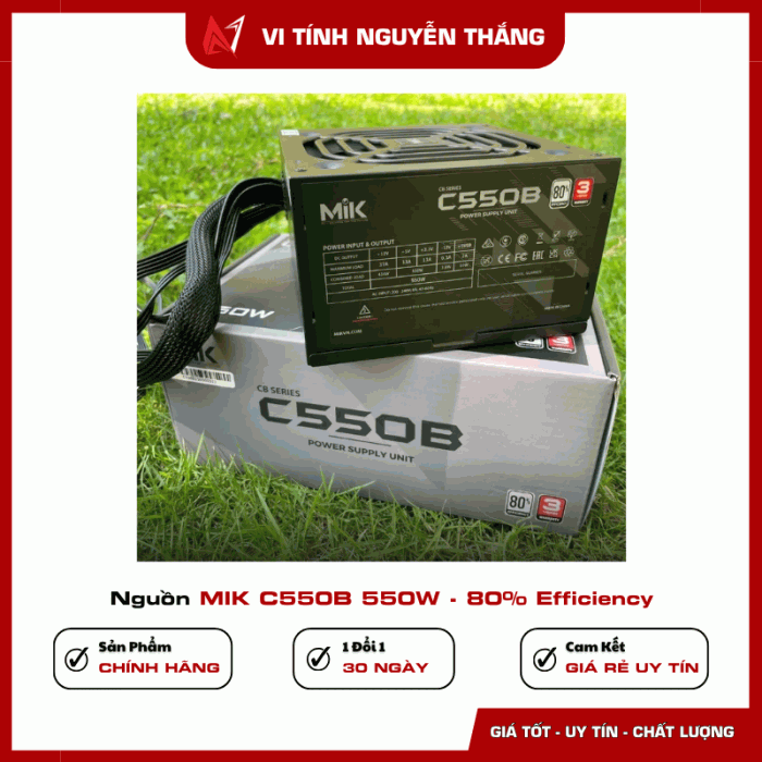 Nguồn MIK C550B 550W là lựa chọn hướng đến người dùng cần một bộ nguồn ổn định, chi phí hợp lý nhưng vẫn đảm bảo hiệu năng cho hệ thống. Với công suất 550W cùng mức hiệu suất đạt khoảng 80%, sản phẩm đáp ứng tốt nhu cầu vận hành của các cấu hình PC phổ thông đến tầm trung, bao gồm cả gaming nhẹ và làm việc hàng ngày.