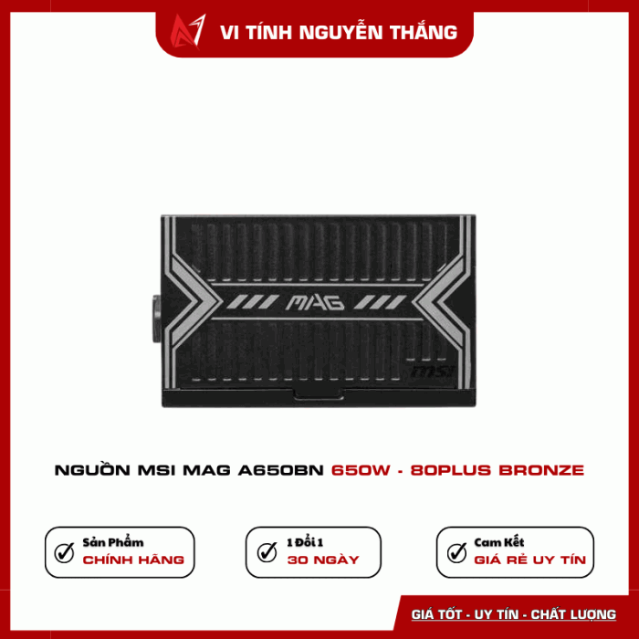 Nguồn MSI MAG A650BN 650W 80 Plus Bronze mang đến sự cân bằng hoàn hảo giữa hiệu năng, độ bền và giá thành. Đây là lựa chọn đáng tin cậy cho mọi bộ PC hiện đại.