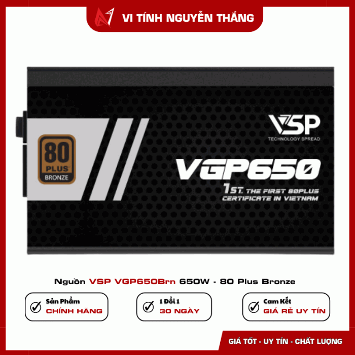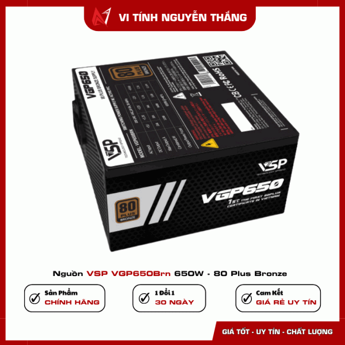 Nguồn VSP VGP650BRN 650W – 80 Plus Bronze là lựa chọn đáng giá trong tầm giá, đáp ứng nhu cầu cho mọi dàn PC tầm trung. Với hiệu suất cao, công nghệ bảo vệ đầy đủ và thiết kế bền bỉ, sản phẩm phù hợp cho người dùng đang tìm kiếm một bộ nguồn ổn định – tiết kiệm – giá tốt.