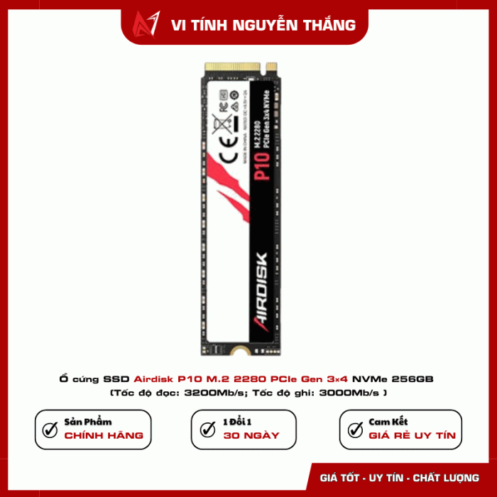 Nếu bạn đang tìm kiếm một giải pháp lưu trữ tốc độ cao, bền bỉ và giá hợp lý, SSD Airdisk P10 M.2 PCIe Gen 3×4 NVMe 256GB chính là lựa chọn đáng đầu tư giúp tối ưu hiệu suất máy tính và nâng tầm trải nghiệm công nghệ.