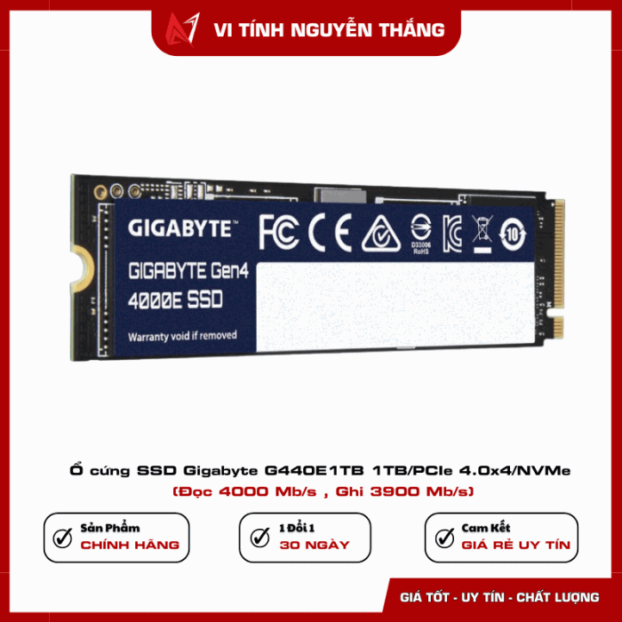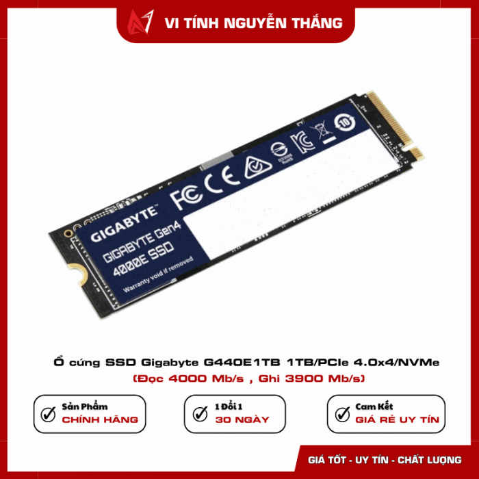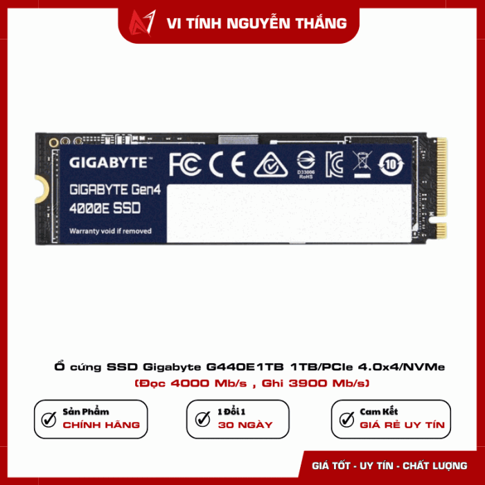SSD Gigabyte G440E 1TB PCIe 4.0 là lựa chọn nâng cấp mạnh mẽ cho người dùng cần tốc độ cao và độ bền ổn định. Sở hữu chuẩn NVMe 1.4 cùng băng thông PCIe Gen 4, sản phẩm mang lại hiệu năng vượt trội so với SSD thế hệ cũ, phù hợp cho PC – Laptop làm đồ họa, chỉnh sửa video, chơi game hoặc làm việc đa tác vụ nặng.