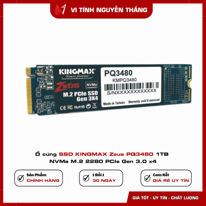 KINGMAX Zeus PQ3480 1TB là lựa chọn nâng cấp cực kỳ đáng giá trong tầm giá NVMe Gen 3.0. Với tốc độ nhanh, độ bền cao, dung lượng lớn và khả năng tương thích rộng, ổ phù hợp cho mọi nhu cầu: làm việc, học tập, gaming hay xử lý đa nhiệm. Nếu bạn đang tìm một ổ cứng SSD 1TB hiệu năng ổn định, giá hợp lý, KINGMAX PQ3480 chính là lựa chọn tối ưu.