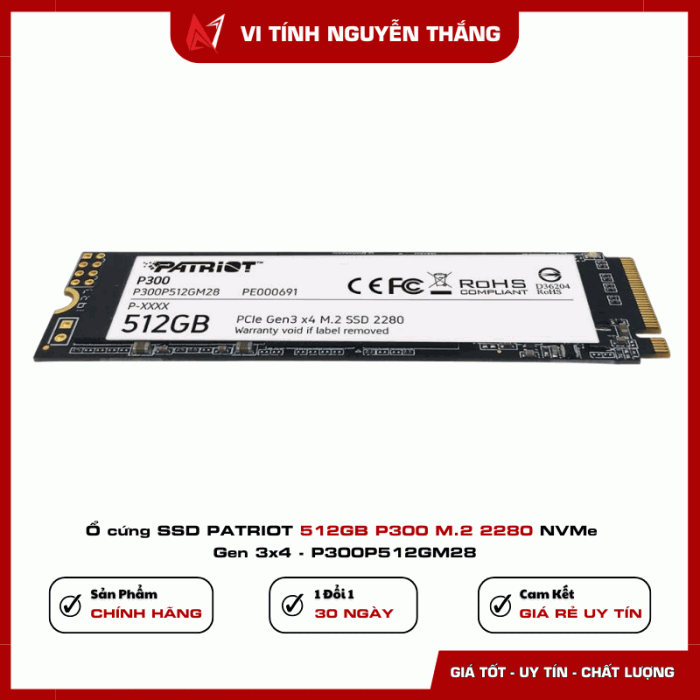 SSD Patriot P300 512GB mang đến tốc độ ổn định, độ bền tốt và mức giá hợp lý. Đây là lựa chọn nâng cấp đáng mua cho laptop – PC giúp cải thiện tốc độ, giảm độ trễ và tăng hiệu suất tổng thể.