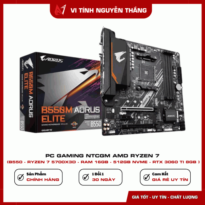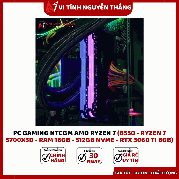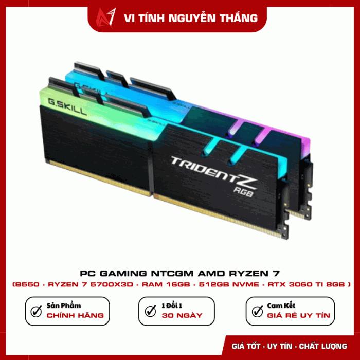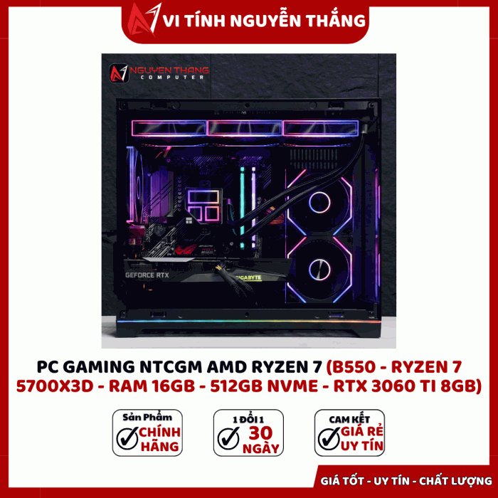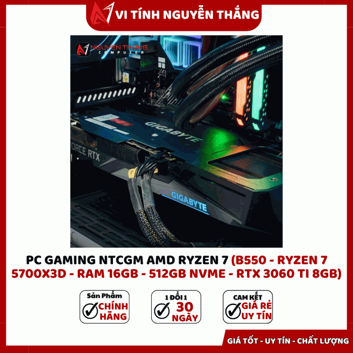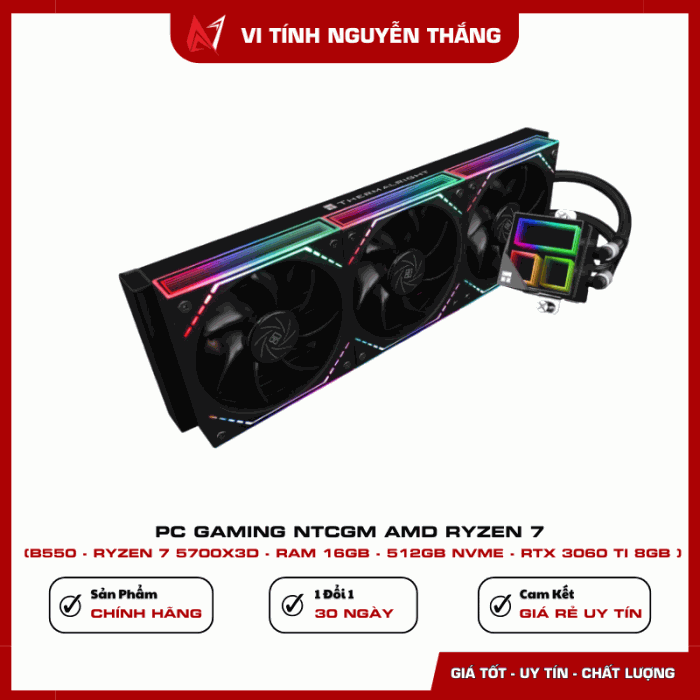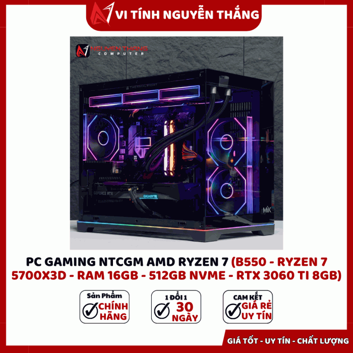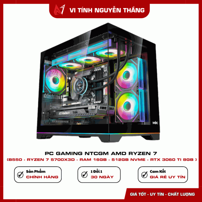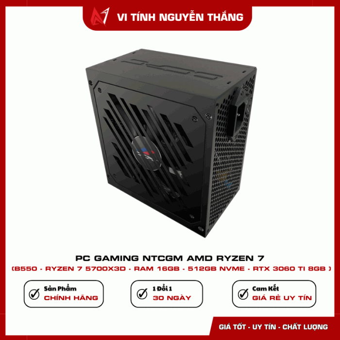 PC GAMING NTCGM AMD RYZEN 7 được thiết kế dành cho game thủ và người dùng hiệu suất cao đang tìm kiếm một cấu hình mạnh, ổn định và tối ưu chi phí. Với CPU Ryzen 7 5700X3D tích hợp bộ nhớ đệm lớn, kết hợp RAM 16GB, SSD NVMe 512GB và VGA RTX 3060 Ti, bộ máy mang đến khả năng xử lý vượt trội trong gaming, đồ họa, livestream và render video. Cấu hình dựa trên nền tảng B550 giúp đảm bảo độ ổn định lâu dài và dễ dàng nâng cấp trong tương lai.