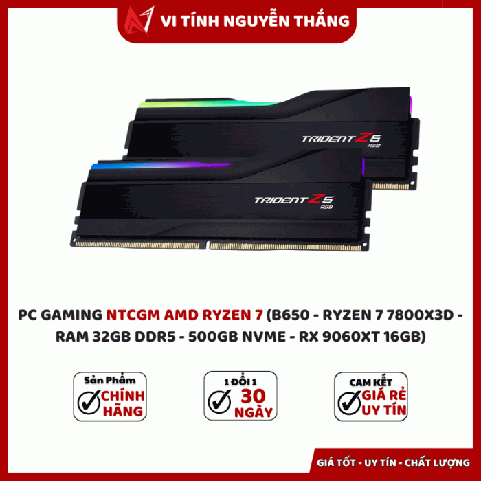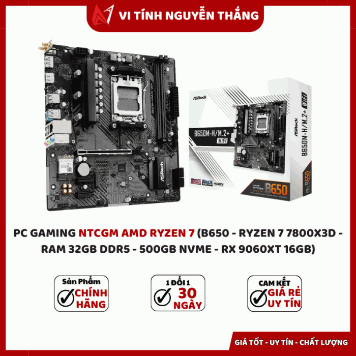 Nếu bạn đang tìm kiếm một cấu hình PC gaming mạnh mẽ, PC GAMING NTCGM AMD RYZEN 7 chắc chắn là lựa chọn lý tưởng. Trang bị mainboard B650 cùng CPU Ryzen 7 7800X3D với công nghệ 3D V-Cache tiên tiến, bộ PC này mang đến hiệu năng xử lý vượt trội cho cả gaming lẫn công việc sáng tạo nội dung.