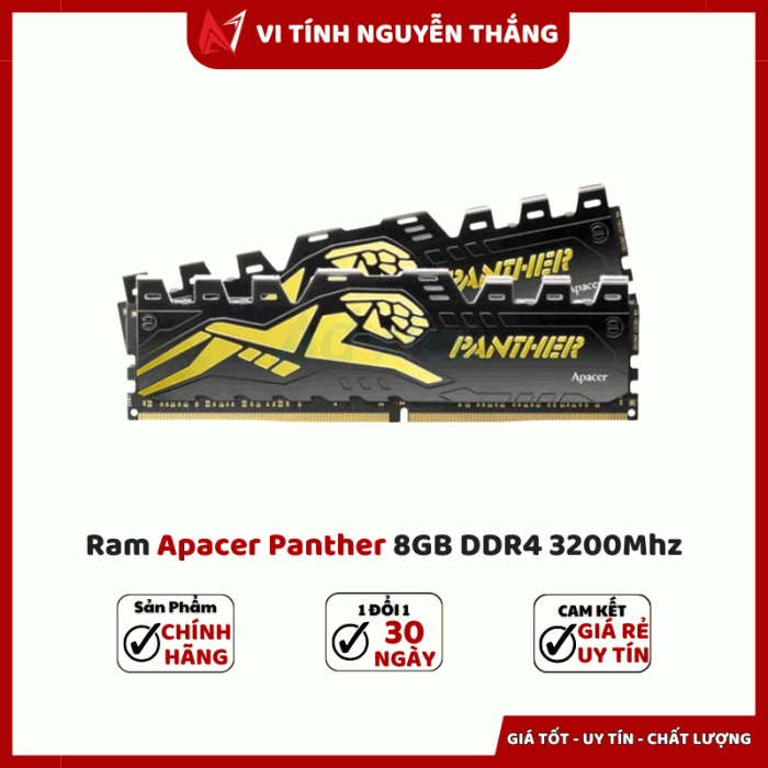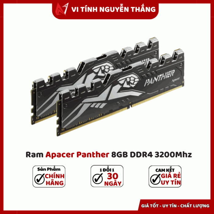 RAM Apacer Panther 8GB DDR4 3200 là lựa chọn hợp lý cho người dùng muốn nâng cấp hiệu năng với ngân sách vừa phải. Với bus 3200 MHz, độ trễ CL16, điện áp 1.2V và tản nhiệt thép, sản phẩm mang lại hiệu suất ổn định khi chơi game, làm đồ họa hay đa nhiệm. Nếu bạn cần một thanh RAM vừa đáp ứng hiệu năng, vừa có thiết kế bắt mắt và khả năng tản nhiệt tốt — Apacer Panther là phương án cân bằng giữa hiệu năng độ bền chi phí.
