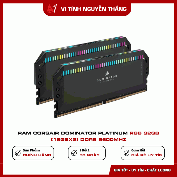 RAM Corsair Dominator Platinum RGB 32GB DDR5 5600MHz là lựa chọn lý tưởng cho những ai cần hiệu năng cao, độ ổn định bền bỉ và thiết kế RGB cao cấp cho các bộ PC thế hệ mới.