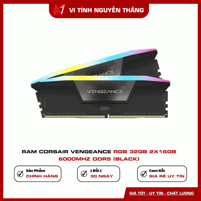 RAM Corsair Vengeance RGB 32GB 6000MHz DDR5 là lựa chọn lý tưởng cho những ai yêu cầu hiệu suất cao, thiết kế RGB đẹp mắt và độ ổn định vượt trội cho hệ thống PC thế hệ mới.