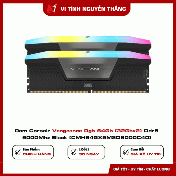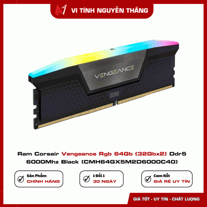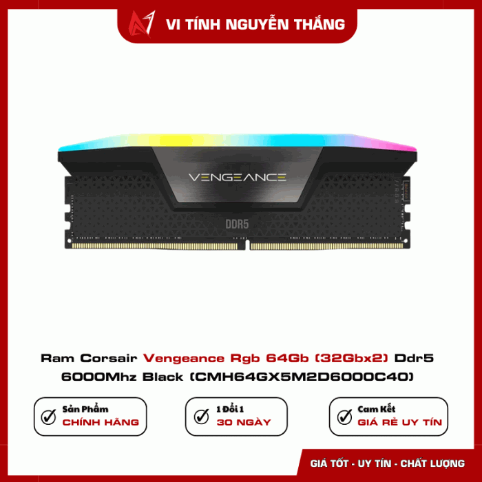 RAM Corsair Vengeance RGB 64GB DDR5 6000MHz Black là sự kết hợp hoàn hảo giữa hiệu năng, thẩm mỹ và độ bền. Đây là lựa chọn lý tưởng cho những ai muốn xây dựng một cấu hình PC cao cấp, đảm bảo tốc độ, sự ổn định và phong cách đẳng cấp trong từng chi tiết.