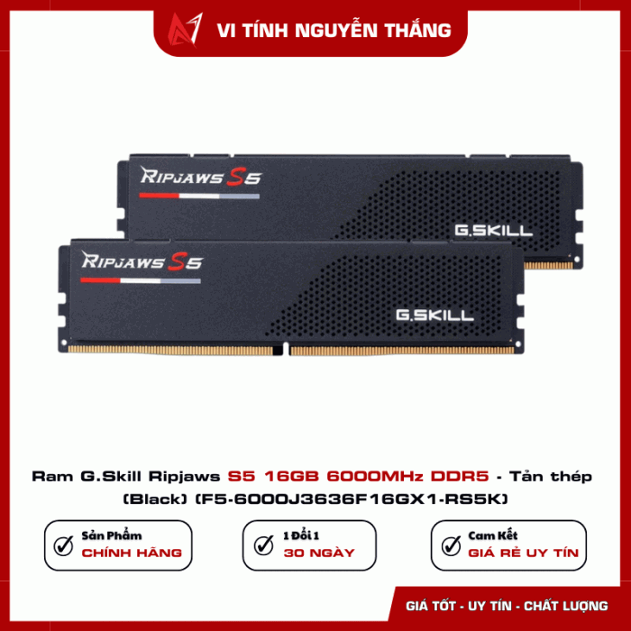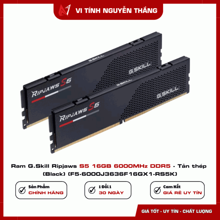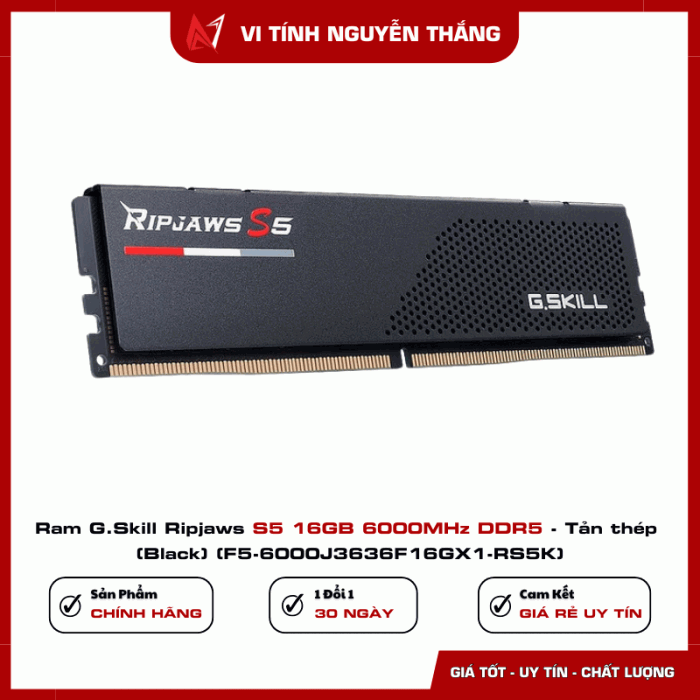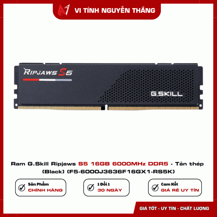 Ram G.Skill Ripjaws S5 16GB 6000MHz DDR5 - Tản thép (Black) (F5-6000J3636F16GX1-RS5K