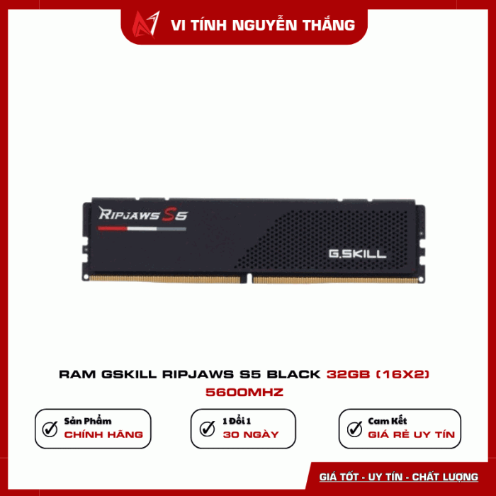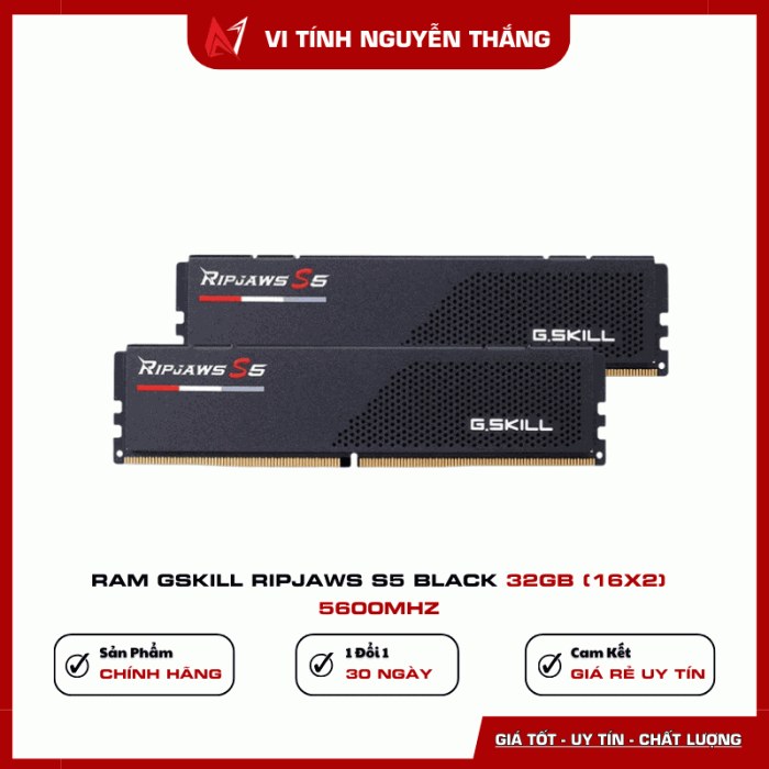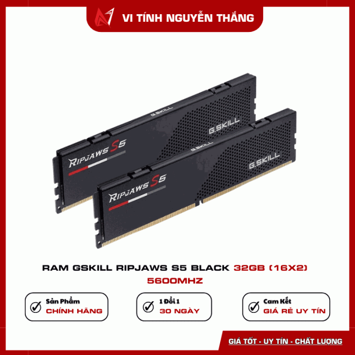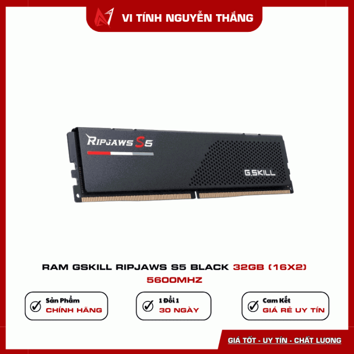 RAM G.Skill Ripjaws S5 Black 32GB (2x16GB) 5600MHz DDR5 – Tản thép