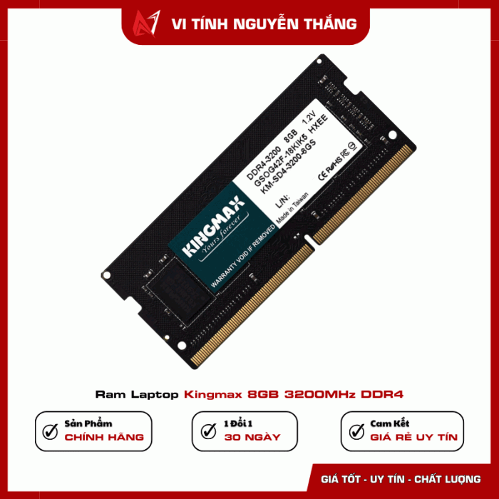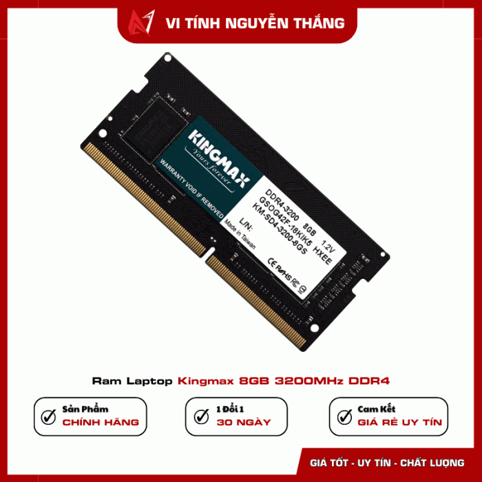 RAM Laptop Kingmax 8GB DDR4 3200MHz là lựa chọn phù hợp cho người dùng muốn cải thiện tốc độ xử lý và khả năng đa nhiệm mà không cần thay mới toàn bộ thiết bị. Dung lượng 8GB đáp ứng tốt nhu cầu học tập, làm việc văn phòng, lướt web, xem phim và sử dụng phần mềm cơ bản.