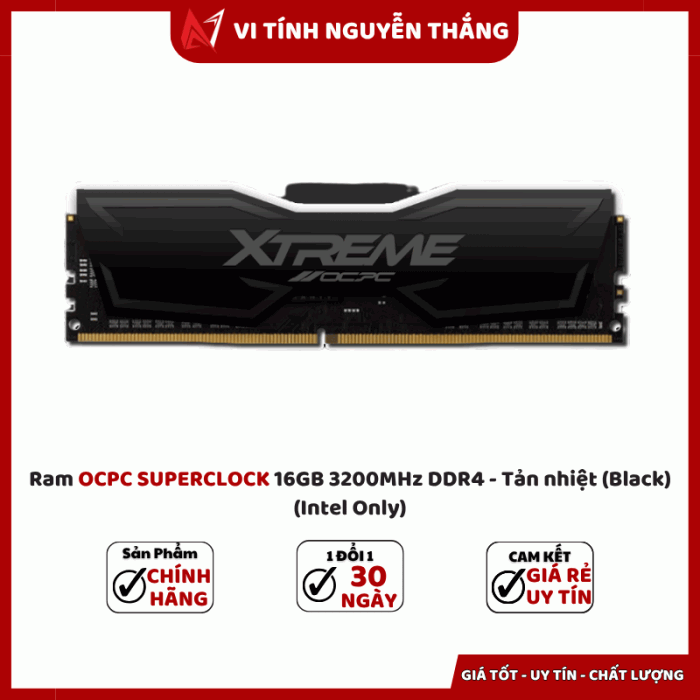 RAM OCPC SUPERCLOCK 16GB DDR4 3200MHz là lựa chọn hợp lý cho người dùng cần nâng cấp RAM cho máy tính bàn sử dụng CPU Intel. Với hiệu năng ổn định, tản nhiệt hiệu quả và thiết kế bắt mắt, đây là sản phẩm đáng cân nhắc trong phân khúc RAM phổ thông hiệu suất cao.