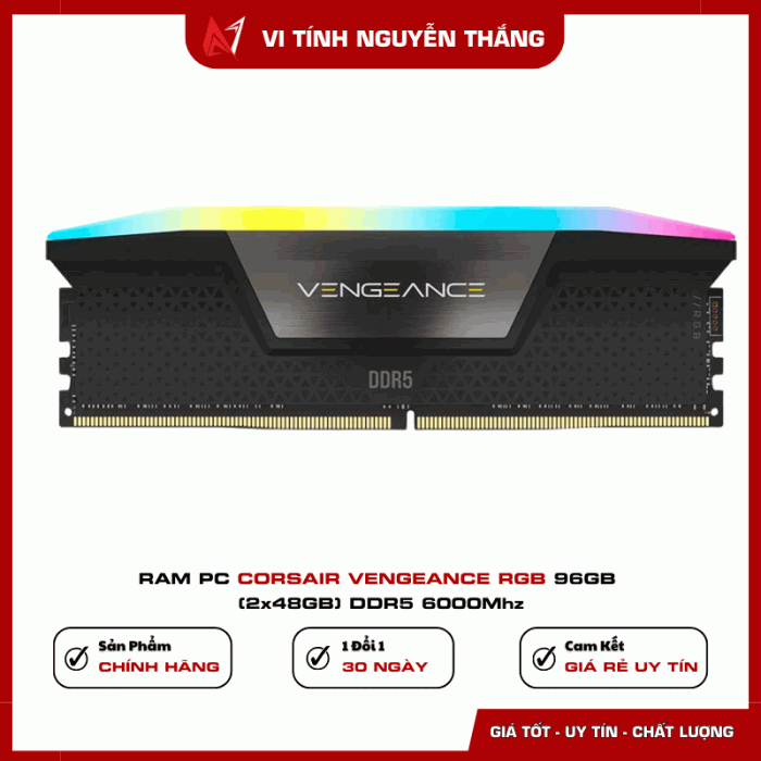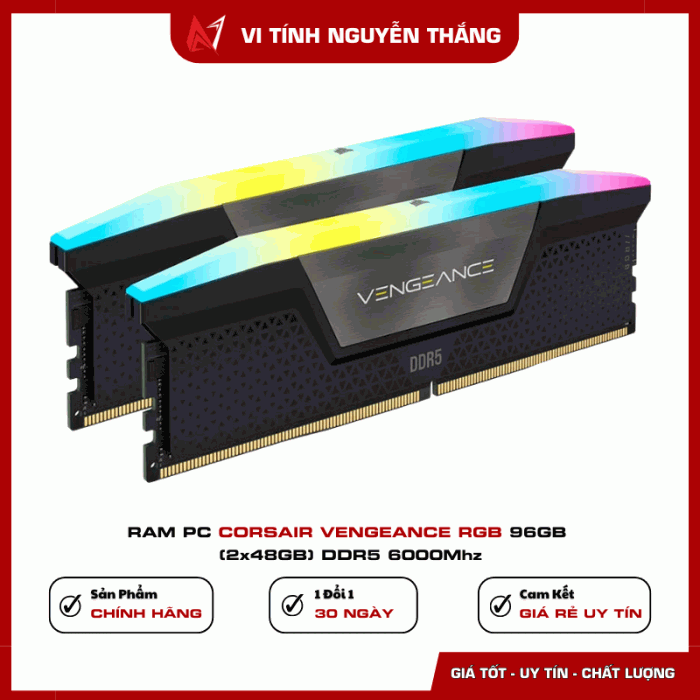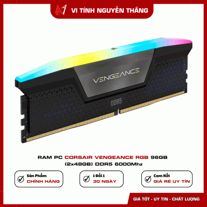 RAM Corsair Vengeance RGB 96GB DDR5 6000MHz là lựa chọn hoàn hảo cho người dùng cần dung lượng lớn, tốc độ cao và tính thẩm mỹ đẹp. Đây là giải pháp mạnh mẽ cho PC workstation, gaming và các tác vụ chuyên sâu cần hiệu năng vượt trội.