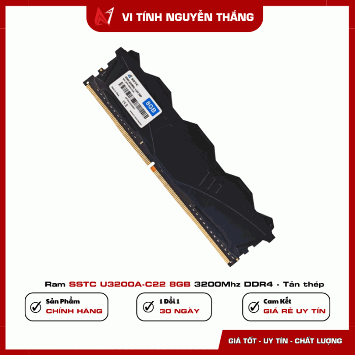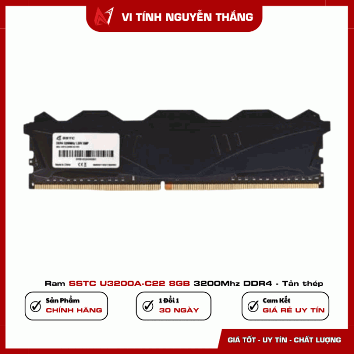 RAM SSTC U3200A-C22 8GB 3200MHz DDR4 – Tản thép là lựa chọn hợp lý cho cấu hình phổ thông. Dung lượng đủ dùng, bus ổn định, tản nhiệt bền bỉ và bảo hành dài hạn giúp sản phẩm đáp ứng tốt nhu cầu sử dụng hằng ngày với chi phí tối ưu.
