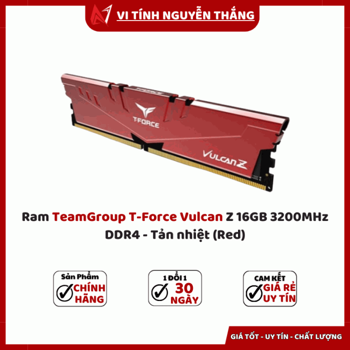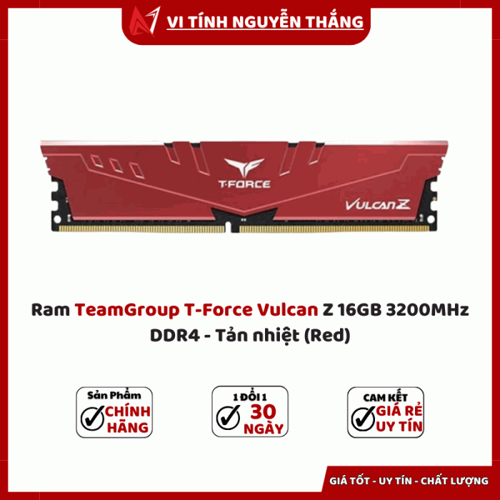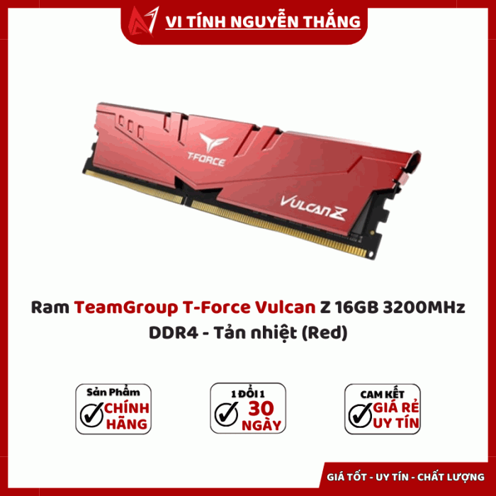 Ram TeamGroup T-Force Vulcan Z 16GB 3200MHz DDR4 - Tản nhiệt (Red) là sự lựa chọn đáng giá cho bất kỳ ai muốn nâng cấp máy tính với hiệu năng mạnh mẽ, thiết kế bắt mắt và độ bền vượt trội. Đây không chỉ là linh kiện giúp hệ thống vận hành mượt mà mà còn là điểm nhấn phong cách cho dàn PC.