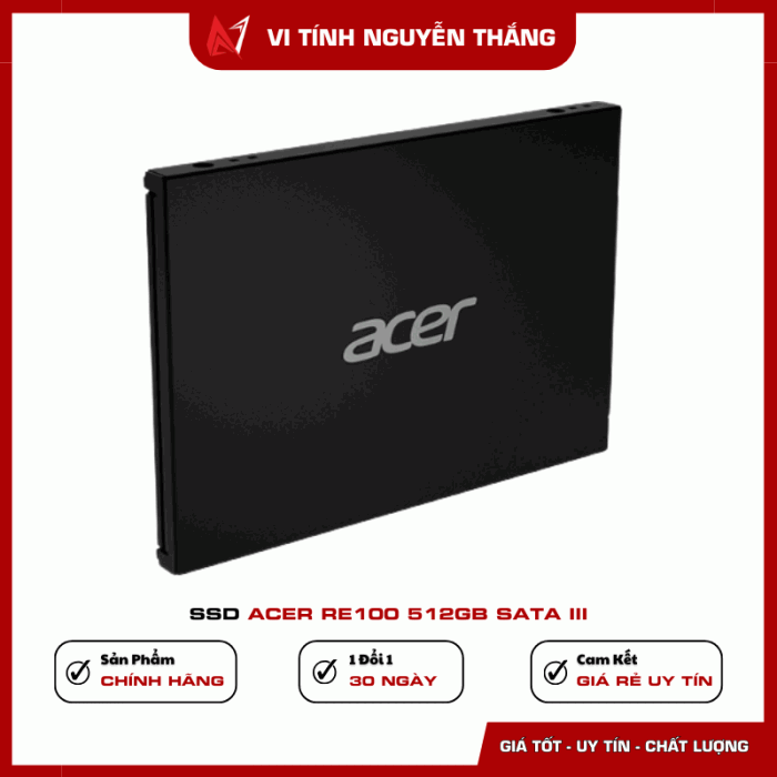 SSD ACER RE100 512GB SATA III là giải pháp nâng cấp hiệu năng tối ưu dành cho máy tính bàn và laptop sử dụng chuẩn 2.5 inch. Với tốc độ đọc lên đến 560MB/s và ghi 520MB/s, sản phẩm giúp cải thiện đáng kể thời gian khởi động hệ điều hành, mở ứng dụng và sao chép dữ liệu.