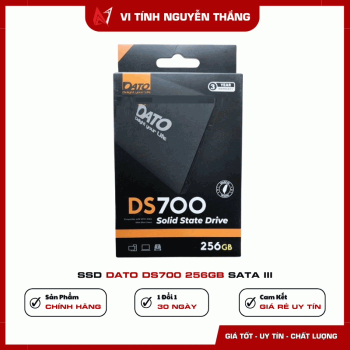 SSD DATO DS700 256GB SATA III là lựa chọn nâng cấp hoàn hảo cho người dùng muốn cải thiện tốc độ máy tính nhưng vẫn tối ưu chi phí. Sản phẩm sử dụng chuẩn giao tiếp SATA III phổ biến, tương thích rộng rãi với hầu hết PC và Laptop hiện nay. Với tốc độ đọc ghi nhanh và bộ nhớ NAND 3D TLC bền bỉ, DS700 mang đến hiệu năng ổn định trong mọi tác vụ từ văn phòng, học tập đến giải trí.