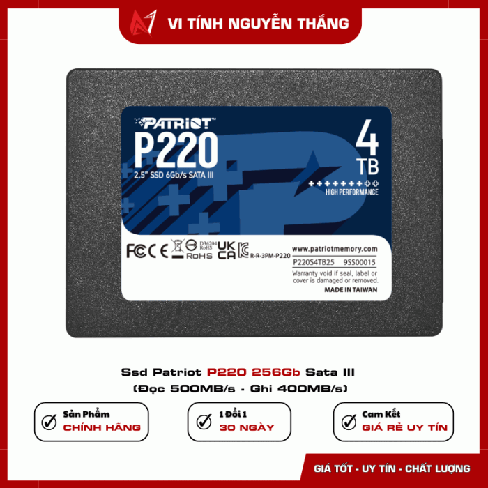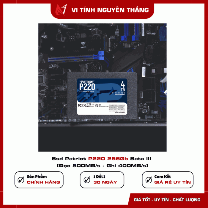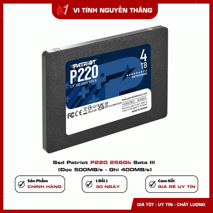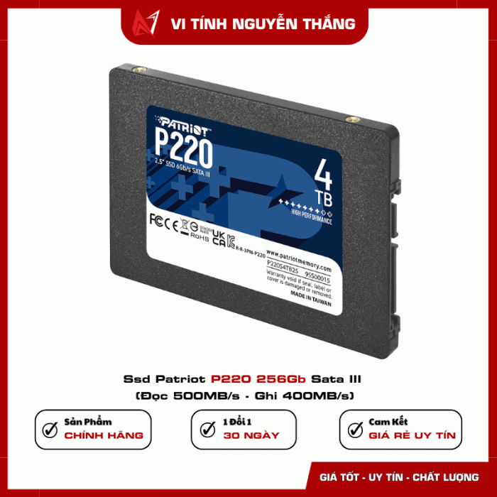 SSD Patriot P220 256GB SATA III là giải pháp lưu trữ nhanh, bền bỉ và hiệu quả chi phí. Nếu Đại Ca đang tìm một ổ SSD tăng tốc khởi động máy, mở ứng dụng nhanh hơn và đảm bảo độ bền lâu dài, đây chắc chắn là lựa chọn không thể bỏ qua.