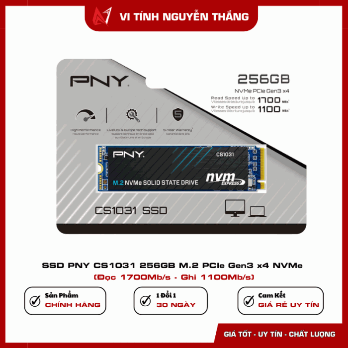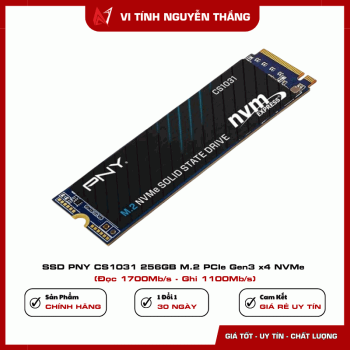 SSD PNY CS1031 256GB M.2 PCIe Gen3 x4 NVMe là giải pháp nâng cấp hiệu quả cho máy tính văn phòng và người dùng phổ thông muốn cải thiện tốc độ hệ thống mà không cần đầu tư quá cao. Với hiệu năng đọc ghi tốt, thiết kế nhỏ gọn, khả năng tương thích rộng và độ ổn định đến từ thương hiệu PNY, sản phẩm đáp ứng tốt nhu cầu sử dụng lâu dài trong học tập và làm việc hằng ngày.