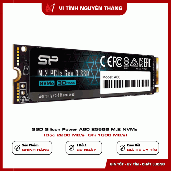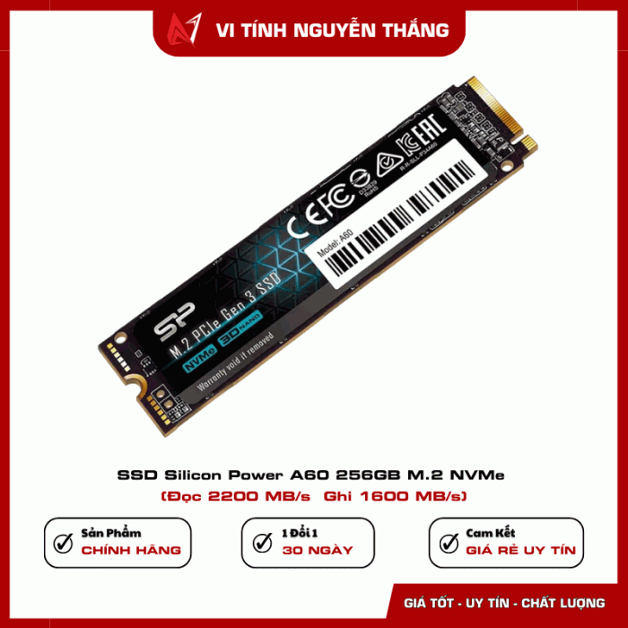 SSD Silicon Power A60 256GB là giải pháp lưu trữ tốc độ cao dành cho người dùng muốn nâng cấp hiệu năng cho máy tính cá nhân hoặc laptop. Sử dụng chuẩn giao tiếp NVMe PCIe Gen3 x4 hiện đại, ổ cứng mang lại tốc độ đọc và ghi vượt trội so với các dòng SSD SATA truyền thống. Điều này giúp hệ thống khởi động nhanh hơn, ứng dụng mở tức thì và quá trình sao chép dữ liệu diễn ra mượt mà hơn.