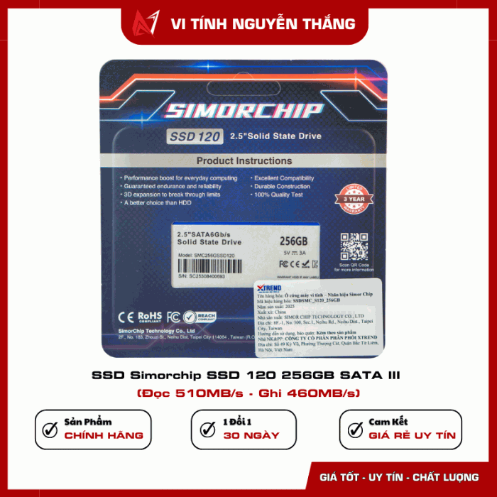 SSD Simorchip S120 256GB SATA III là lựa chọn hợp lý cho người dùng muốn nâng cấp tốc độ hệ thống với chi phí tối ưu. Sở hữu tốc độ đọc ghi ổn định, bộ nhớ 3D TLC NAND cùng chế độ bảo hành 3 năm, sản phẩm đáp ứng tốt nhu cầu sử dụng hàng ngày và lâu dài.