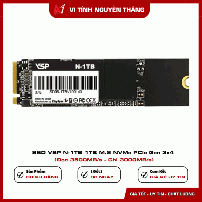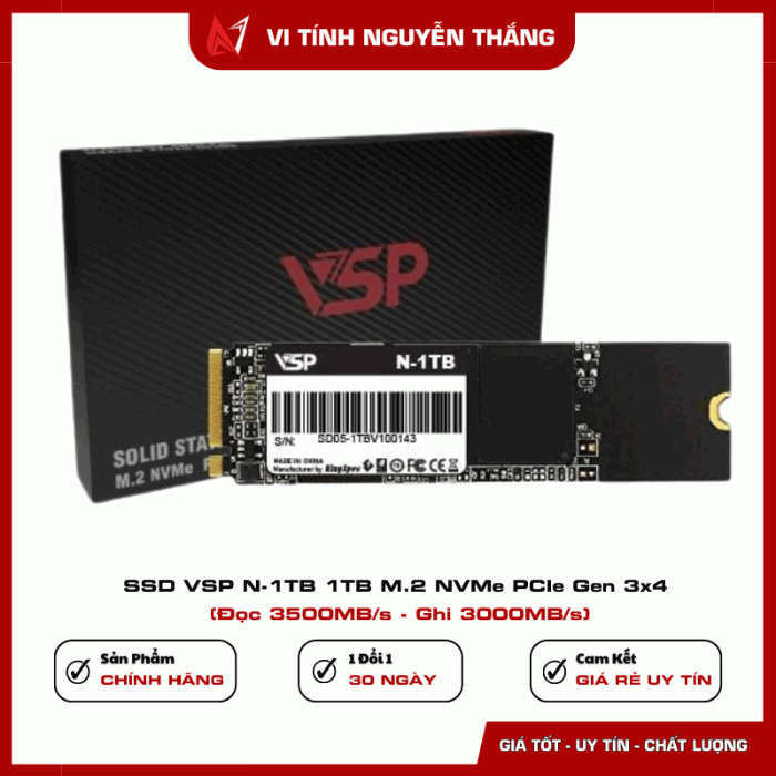 SSD VSP N-1TB 1TB M.2 NVMe PCIe Gen 3x4 là lựa chọn đáng tin cậy cho người dùng cần dung lượng lớn, tốc độ cao và độ ổn định lâu dài. Sản phẩm phù hợp cho nhu cầu làm việc văn phòng, học tập, giải trí và lưu trữ dữ liệu dung lượng lớn.