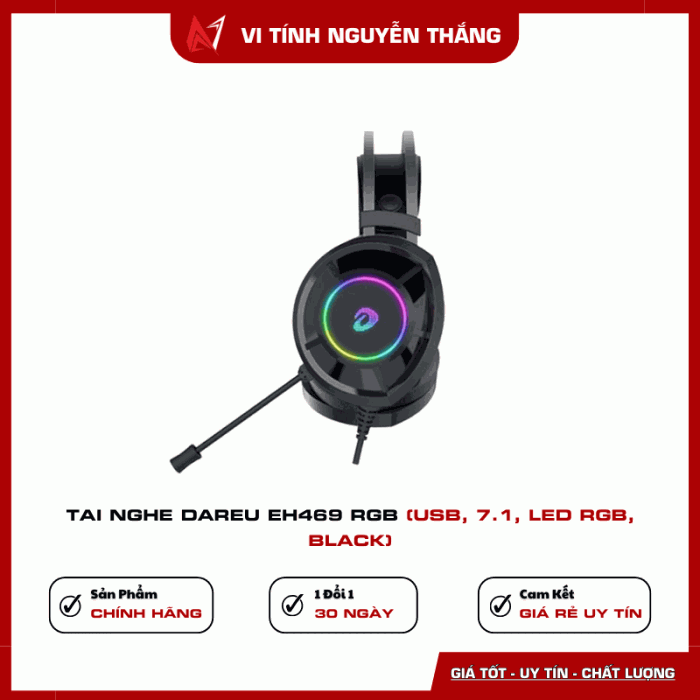 Tai nghe DareU EH469 RGB USB 7.1 – LED RGB Gaming (Black)