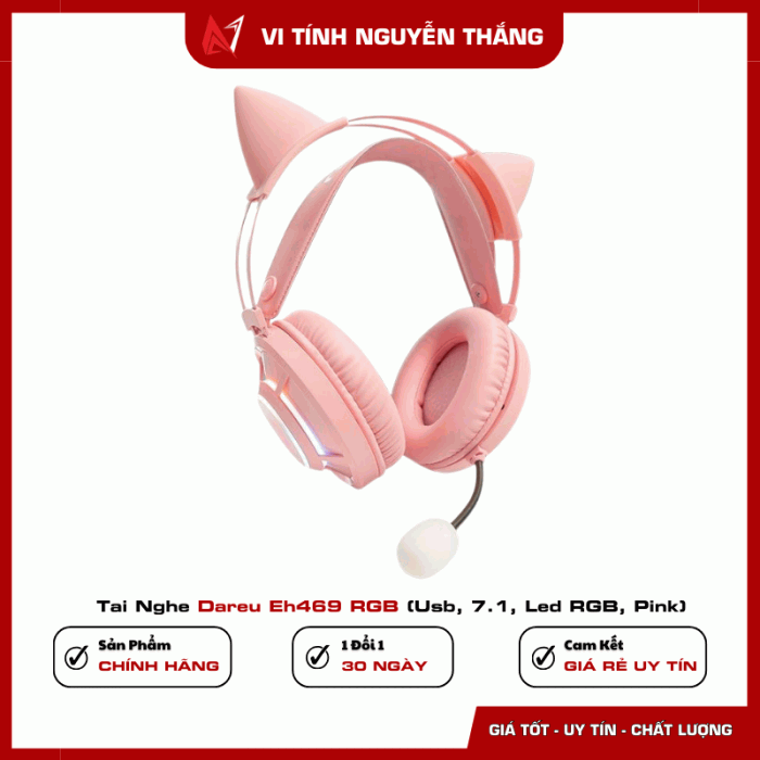 Tai Nghe Dareu Eh469 RGB (Usb, 7.1, Led RGB, Pink)